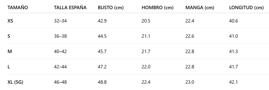 Guía de tallas